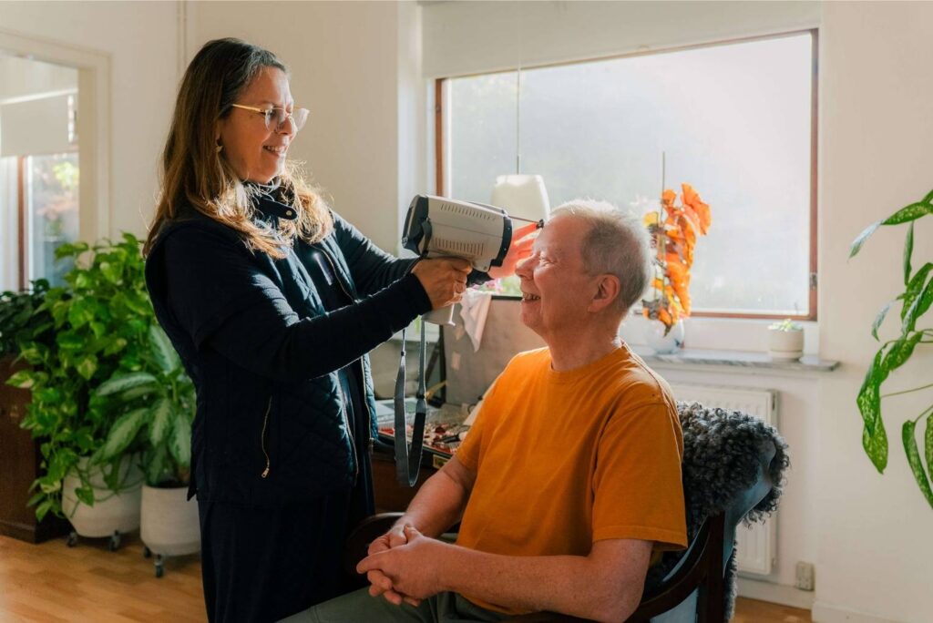 Vi foretager din synsprøve hvor du er i din plejebolig. Vi ved at nogle gang er det vanskeligt at få transport til optiker forretningen, men Hjemmebriller kommer til dig.